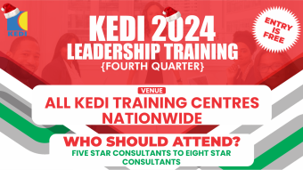 Continuous learning is the key to success, especially in the fast-paced world of Network Marketing that is why KEDI is committed to providing her distributors with top-tier training that empowers them with the knowledge and strategies necessary to grow their businesses and build viable teams. As 2024 business year gradually draws to a close, we Read More